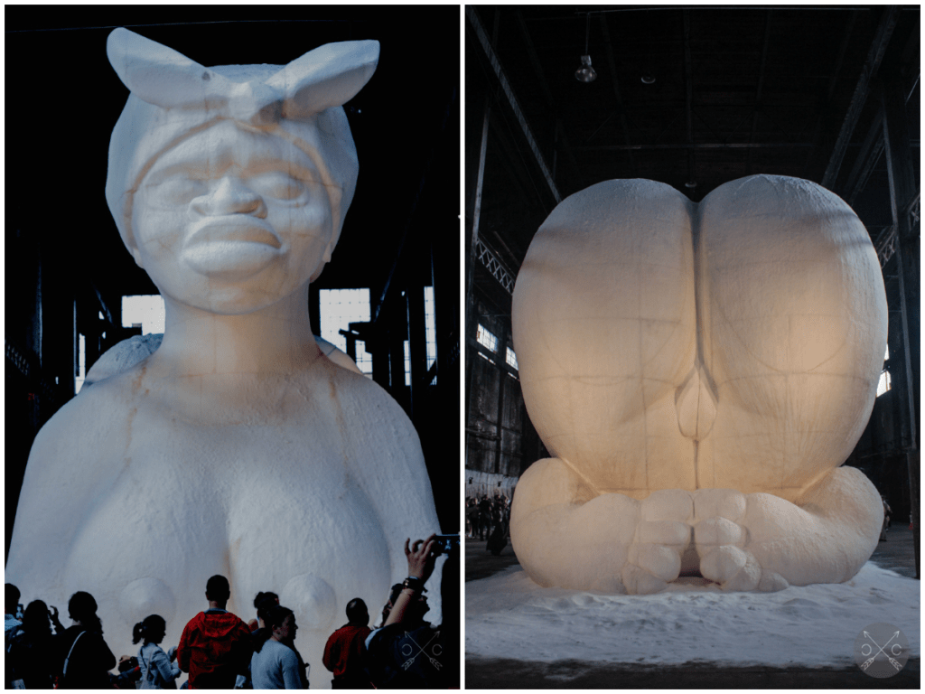 Una sutileza de Kara Walker (2014): esta instalación monumental en Nueva York, una esfinge de azúcar, denuncia la esclavitud y el colonialismo, vinculándolos con la explotación en la producción azucarera.